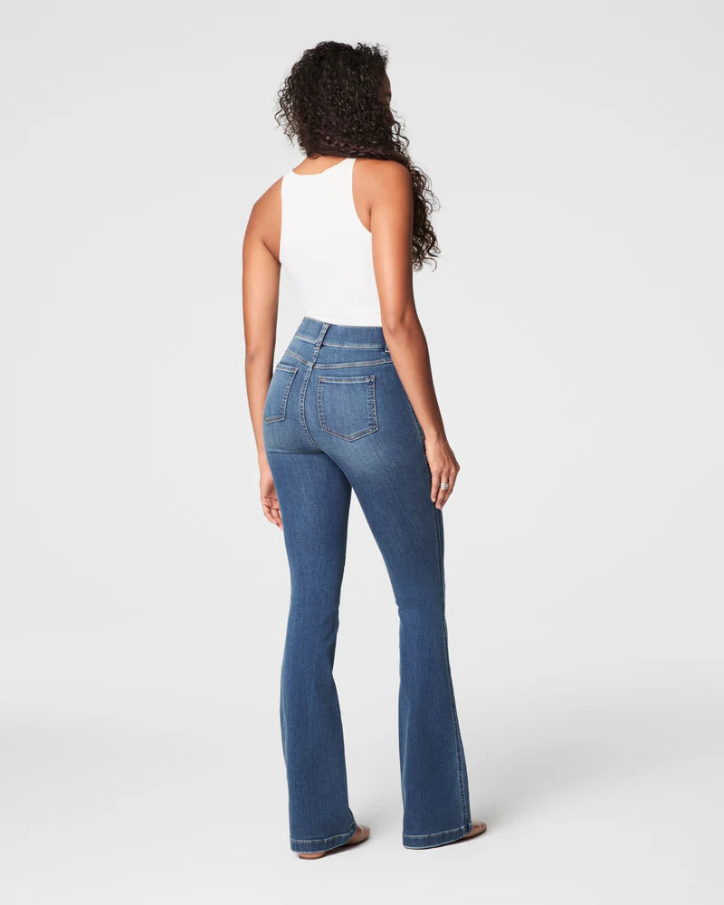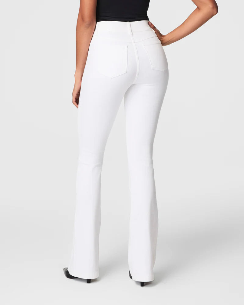 Crafted from premium, 4-way stretch denim designed to hug your curves, our jeans are engineered with built-in targeted SPANX TummyTamer Tech™ that shapes your waist. Plus, a flare style elongates the leg and celebrates your figure. All you have to do is pull these on: faux buttons and no zippers or hip pockets (so no bulk!). This is denim done right.